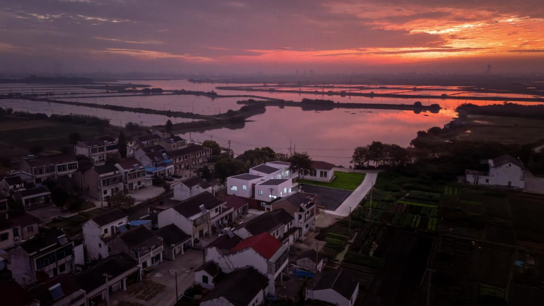 宜興市官林鎮漁業服務中心便選址于桂芳村馬公蕩,用地面積1140平方米、總建筑面積765平方米,設計以“溯源鄉土、對話自然、激活鄉村”為核心,用現代建筑語言轉譯地域印記,讓建筑成為連接傳統與未來的橋梁。